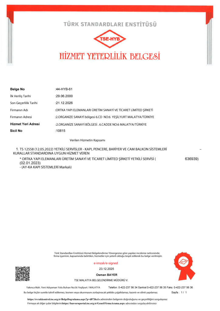 Alanında uzman, kapsamlı eğitimlerden geçmiş sertifikalı ekibiyle kalite anlayışını her aşamada kanıtlayan firmamız; güvenlik, kalite ve estetiği birbirinden ayrılmaz bir bütün olarak görmekte olup, bu yaklaşım müşterilerimiz ve bayilerimiz tarafından büyük takdir toplamaktadır.